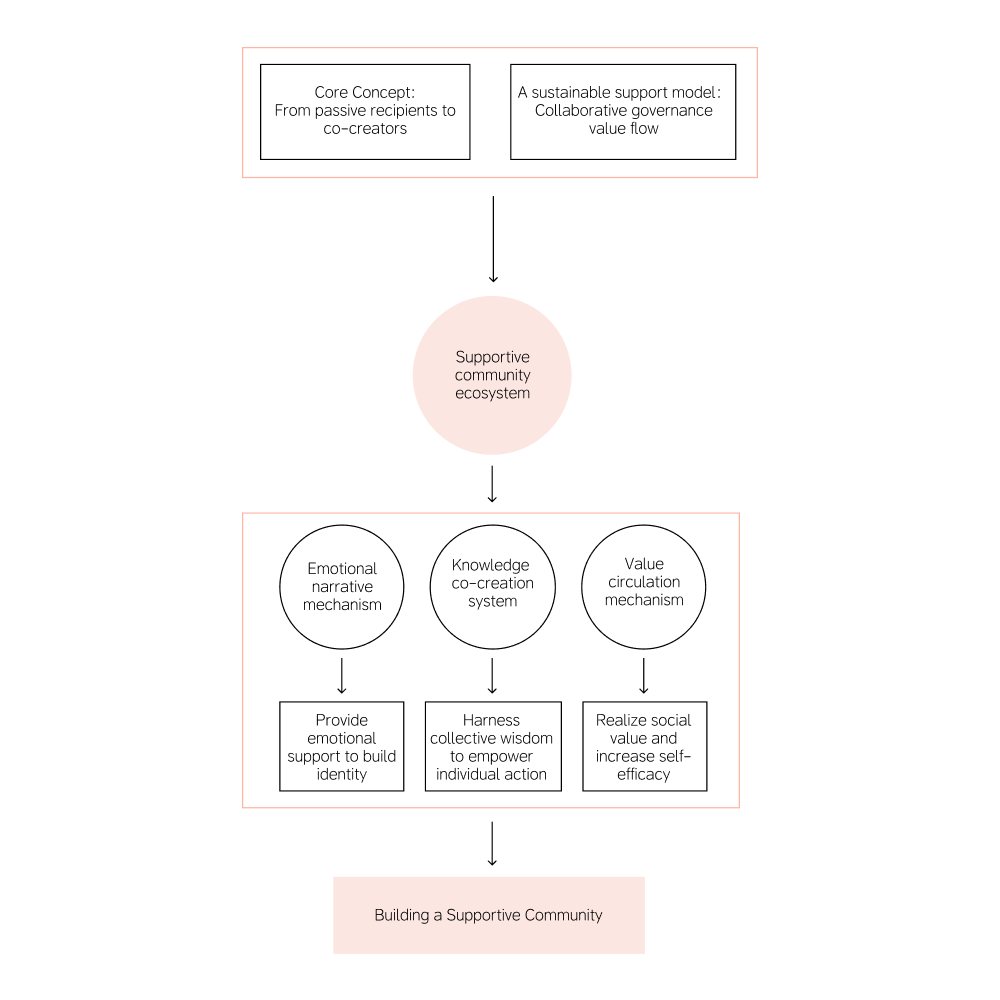 Through the synergistic operation of these three dimensions, Her Echo constructs a supportive community ecosystem that extends from individual emotional support to collective empowerment, achieving long-term flow and self-renewal of supportive relationships.