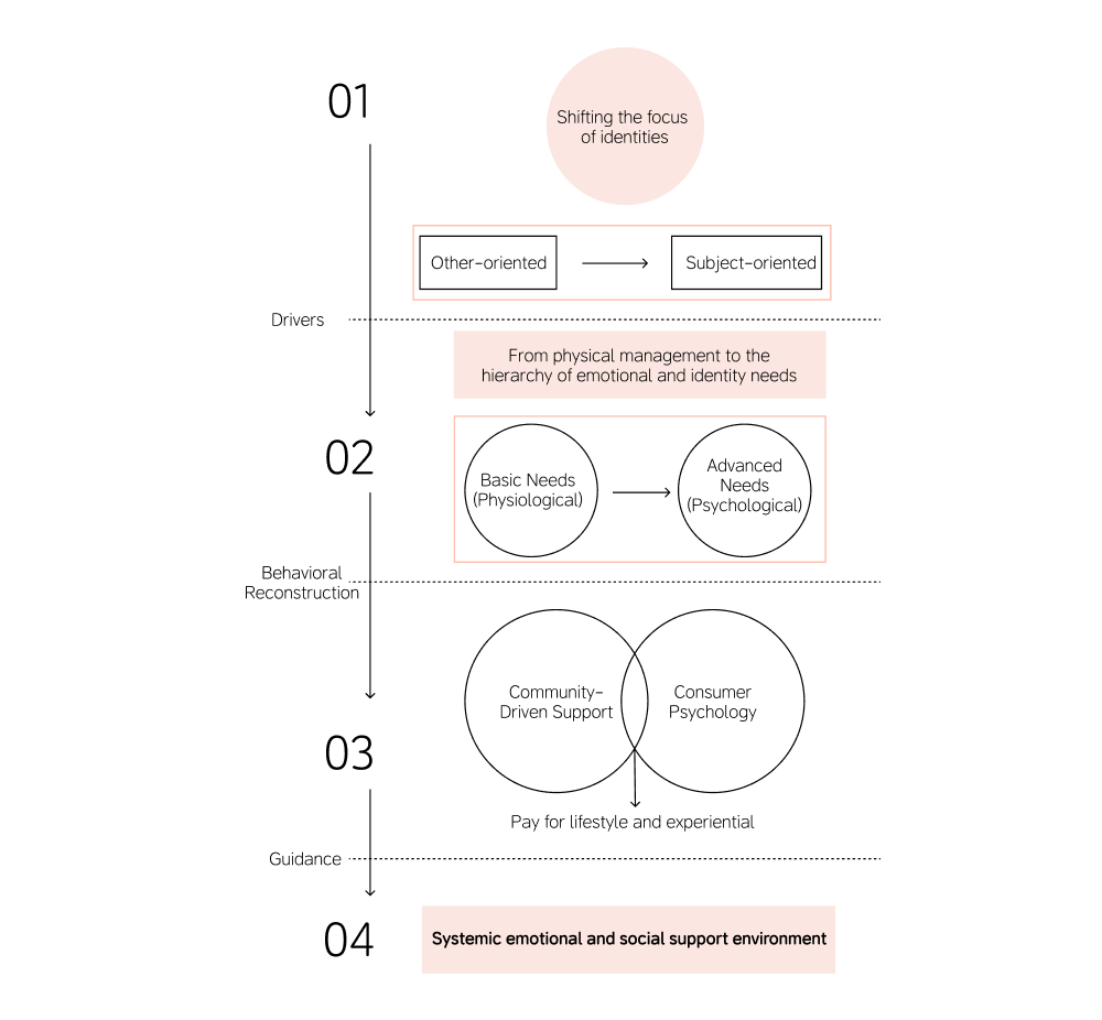 The emotional narrative mechanism encourages users to share their experiences, feelings, and changes, helping individuals achieve self-affirmation through expression and rebuild their identity through the resonance of others.